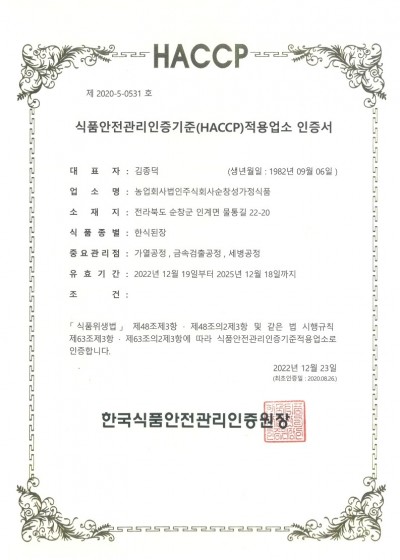 한식된장(HACCP인증서)