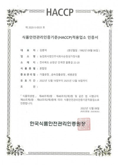 혼합장(HACCP인증서)
