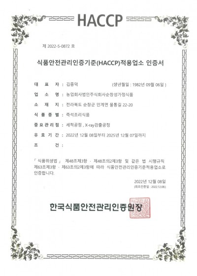 즉석조리(HACCP 인증서)