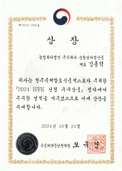 IFFE2024 전주국제발효식품엑스포 지정 식품의약품안전처장상 수상