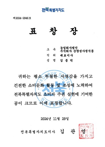 2024년 전라북도 소비자대회 도지사 표창 수상