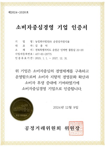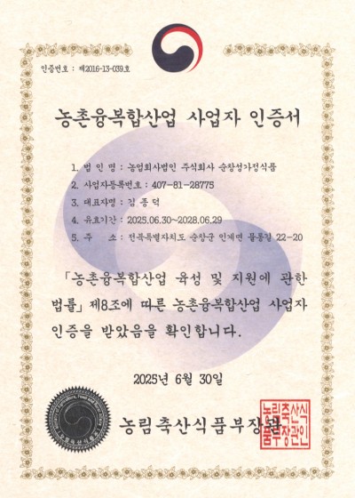 농촌융복합사업자 재인증 획득(6차산업)