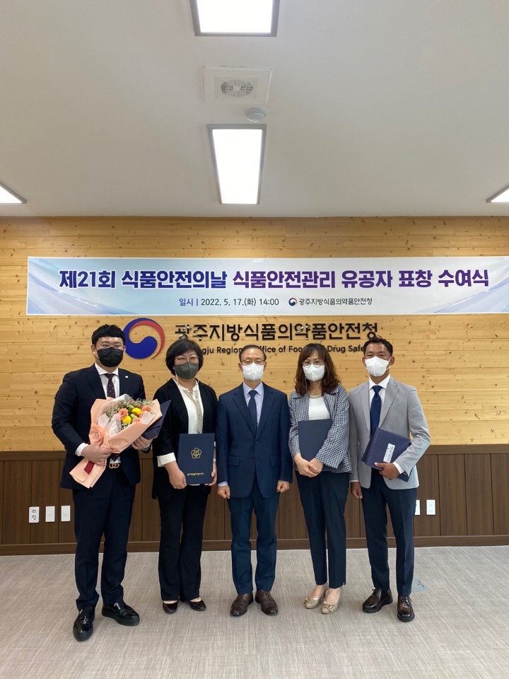 식품안전 제도개선 등의 공로를 인정받아 광주지방식품의약품안정청장 표창을 받았습니다.